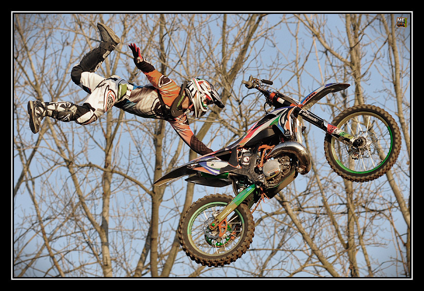 Lo sfondo a me personalmente non piace e lo trovo confusionario ma conosco benissimo dove è stata scattata e capisco le difficoltà, in più non è quello che mi salta subito agli occhi. Mi salta agli occhi che la moto sembri volare ed il timing azzeccato non sia valorizzato dalla dimensione del salto e da un riferimento a terra, benché sia un'inquadratura molto precisa e tecnicamente ben fatta.