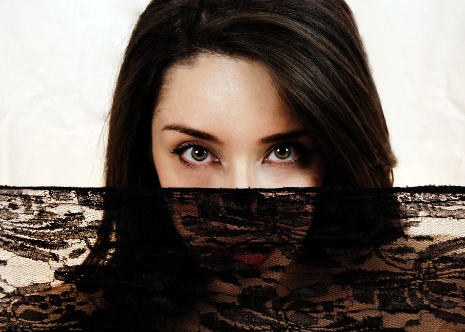 | Occhi meravigliosi e interessante gioco con il velo... |