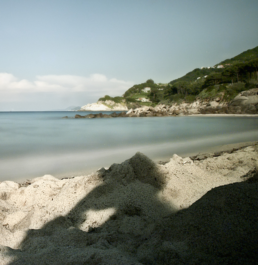 Molto bello l'effetto dato dal tempo lungo sul mare. Anche l'idea di lasciare leggermente sfocati mare e sfondo mi piace.