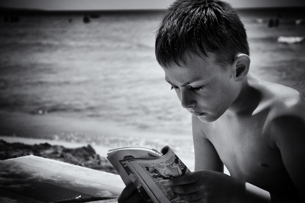 un bel bn per sottolineare l'attenzione e la passione nella lettura del suo fumetto da parte di questo ragazzo. forse si potrebbe stringere un po' in alto, escludendo la piccola striscia di cielo. è probabile si concentri maggiormente l'attenzione di chi osserva sul "gesto". _________________ Salvatore