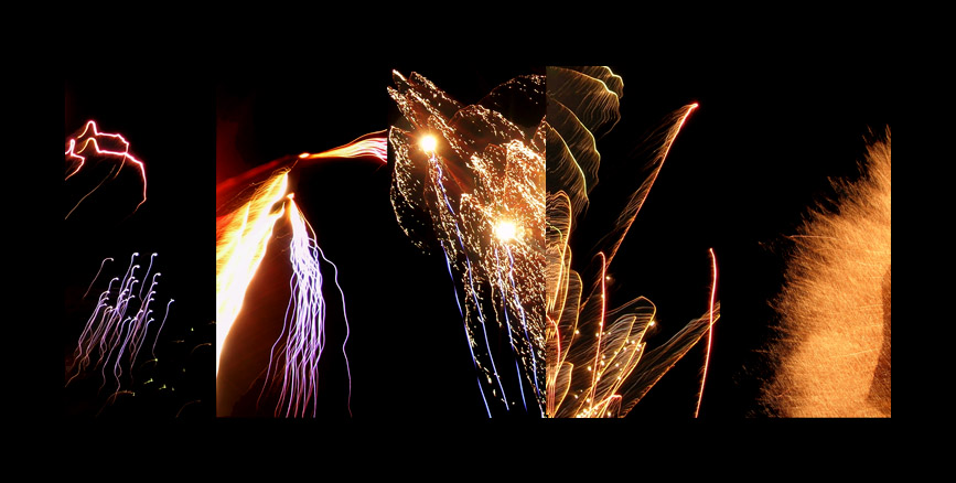 davvero un bel mix e un modo tutto nuovo di vedere dei fuochi d'artificio, lontani dalla perfezione di uno scatto studiato nei tempi giusti e nelle inquadrature ottimali, ma che crea un bel gioco di linee colorate..!