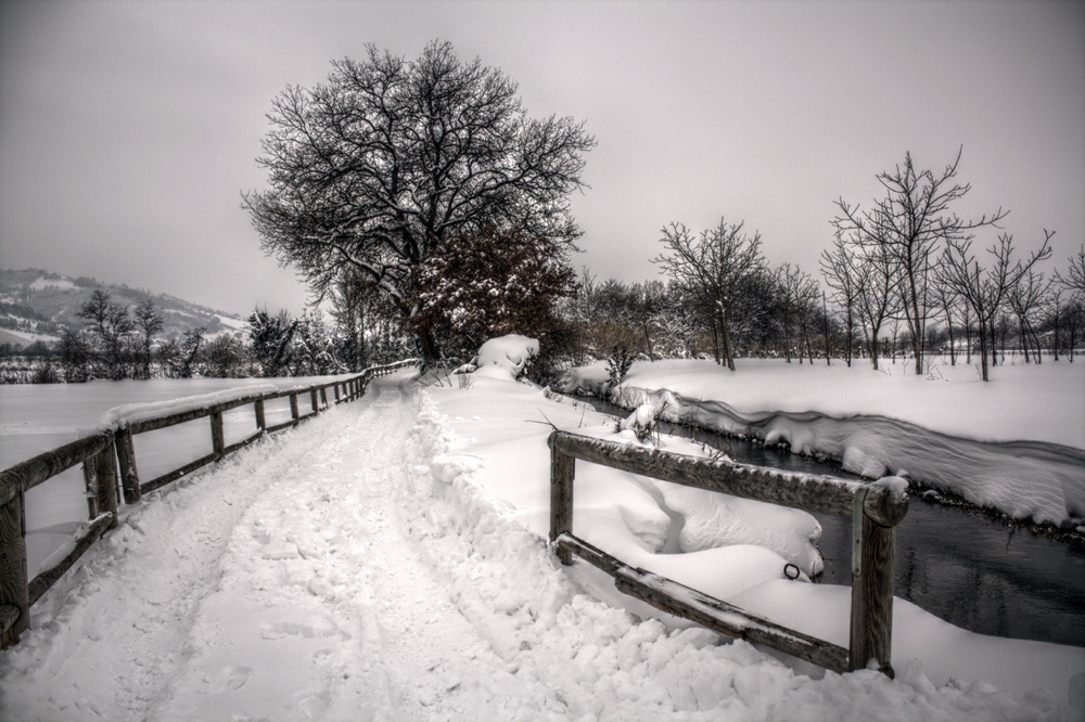 Mi sembra che tu abbia fatto un buon uso della tecnica che, secondo me, rende al meglio con le pieghe della neve sulla sponda del ruscello.