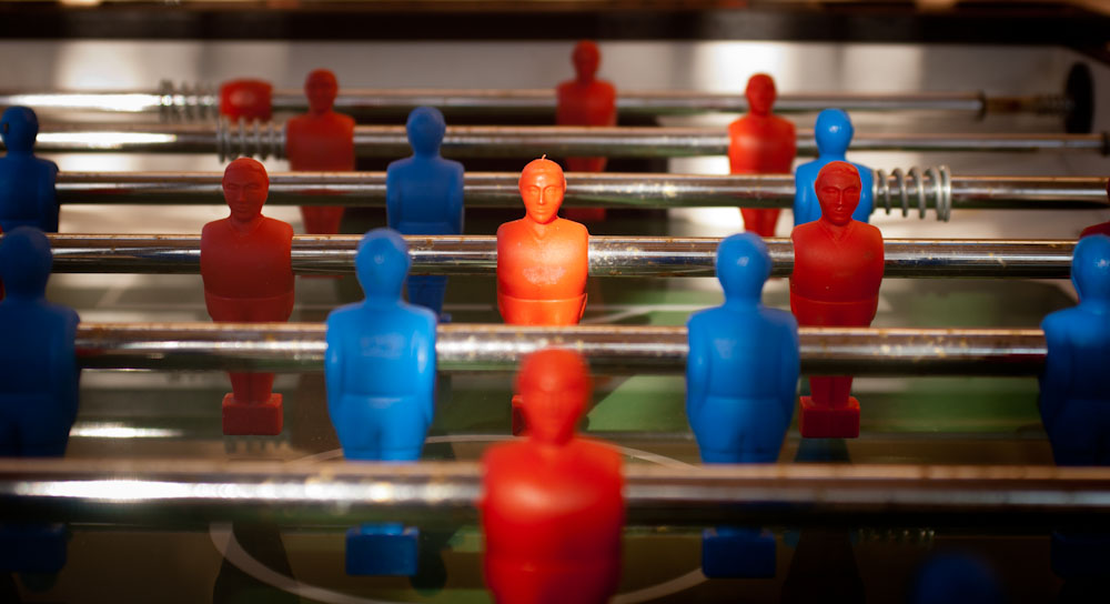 Il tutto rapportato a questo gioco calcio in miniatura....dove anche la vignettatura spinge verso il giocatore in esame