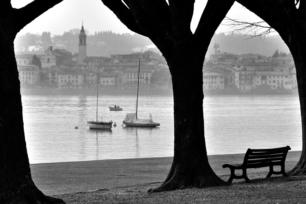 Oltrepassando questi,ma è tutt'altra foto,i due natanti col paese dietro offrono una buona inquadratura.