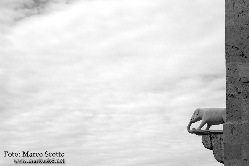 Ciao. Purtroppo se avessi voluto aggiugere anche una parte di quello che "guarda" l'elefante, la foto sarebbe diventata caotica. La funzione antica di quella torre era di guardare che dal mare non arrivassero nemici con intenzioni bellicose nei confronti della città, e soprattutto della parte nobiliare della città.