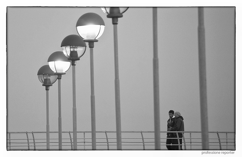 Bianco e nero e composizione mi piacciono (difficile trovare un taglio migliore con quei lampioni...) con la riserva della parte inferiore dell'immagine che, sempre a mio avviso, richiederebbe più... aria
