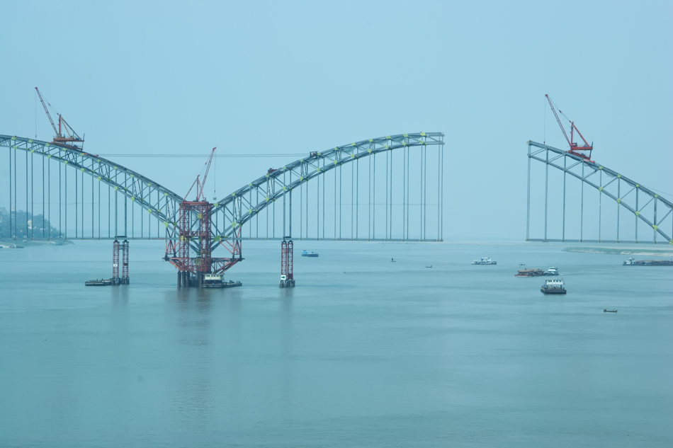 Bello l'uso della linea d'orizzonte come sostegno al ponte in costruzione: dove la tecnica ingegneristica ancora non arriva...