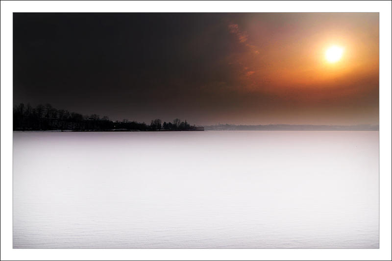 Bella anche questa, forse più tecnicamente corretta nella resa del disco Luminoso. Ma più asettica rispetto alla precedente: mancano quelle orme circolari che visitano la coltre bianca, quell'angolo di canne che colma ed equilibria la parte laterale e che crea un piccolo racconto nell'insieme, regala un'anima alla foto.