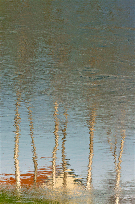 Altra reiterata bella immagine. Se il riflesso stempera la realtà in una sensazione pittorica, la concreta e palpabile matericità della liquida e movimentata superficie liquida riporta ad un inequivocabile impressione di realtà.