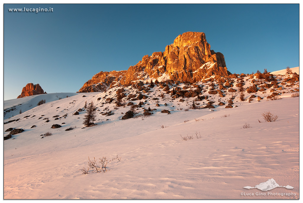 Molto bella la luce e i colori di questo paesaggio dolomitico. La luce calda ha reso rosa la neve la cui dominante hai fatto bene a non correggere rendendo così più interessante il tramonto