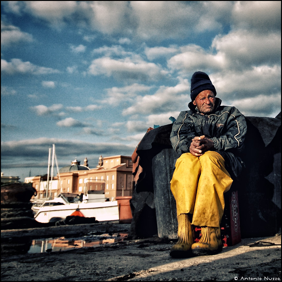 Già, ho cercato di costruire lo scatto attorno al mio soggetto aiutandomi con un taglio quadrato, sono contento che sia piaciuta e che abbia raccontato qualcosa di quest'uomo che nonostamte la sua età, ogni notte va per mare con la sua imbarcazione, svolgendo uno dei mestieri più antichi!