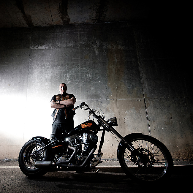 i flash sono due ed entrambi a destra del soggetto: uno dietro ad illuminare lo sfondo ed uno di fianco, leggermente avanti, ad illuminare metà dello stesso e della moto (se ne vede il riflesso sul motore).