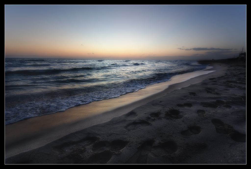 un immagine melanconica questa spiaggia deserta....bella e delicata la luce che si posa tra cielo e mare....il leggero flou regala un atmosfera fuori dal tempo....ciao.... Ok!