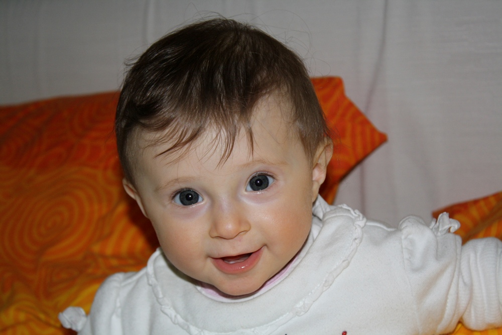 Purtroppo però ci sono troppi elementi che stonano, lo sfondo arancione del divano, i teli bianchi con le pieghe, e cosa più importante la luce del flash diretta. Questo tipo di illuminazione ammazza letteralmente la foto... Ombre dure e soggetto completamente piatto...