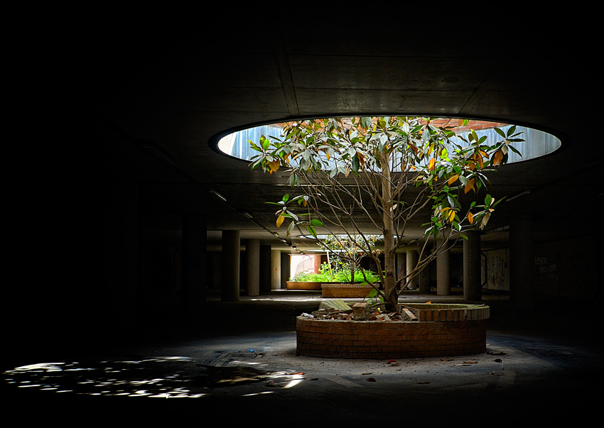 Avresti potuto provare, se fosse stato possibile, a portarti dalla parte destra, dando la schiena all'apertura in fondo, e riprendere solo la pianta e la sua ombra.