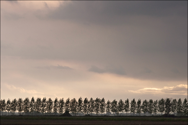 Bello questo fronte di alberi, come soldati impavidi contro un cielo che pare si faccia minaccioso.