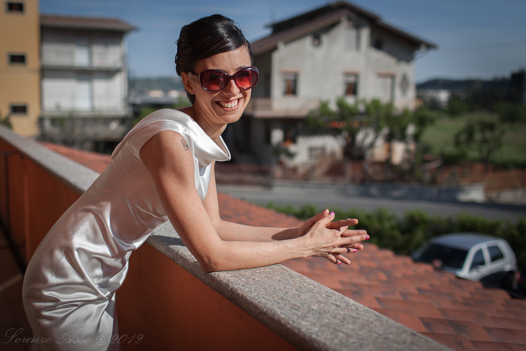 Questo è un ritratto ambientato, dove volevo mantenere leggibile lo sfondo, perchè doveva essere evidente, soprattutto per la sposa, dove lei fosse. (a me ad esempio non piace quella macchina sullo sfondo..)