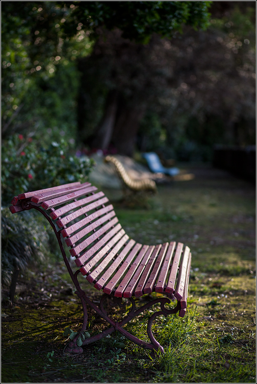 La luce, i colori, lo sfocato, il punto di vista con cui ci presenti da questa prospettiva la sequenza di panchine... tutto funziona alla perfezione. Non riesco a capire cosa sia quella... presenza che appare come imbozzolata di luce (non saprei come altro descriverla) tra la seconda e la terza panchina, che spezza il percorso visivo tra queste (e alla quale l'occhio, perlomeno il mio, continua ad andare). Non sarà mica... Alice? Un'immagine che cattura Wink .