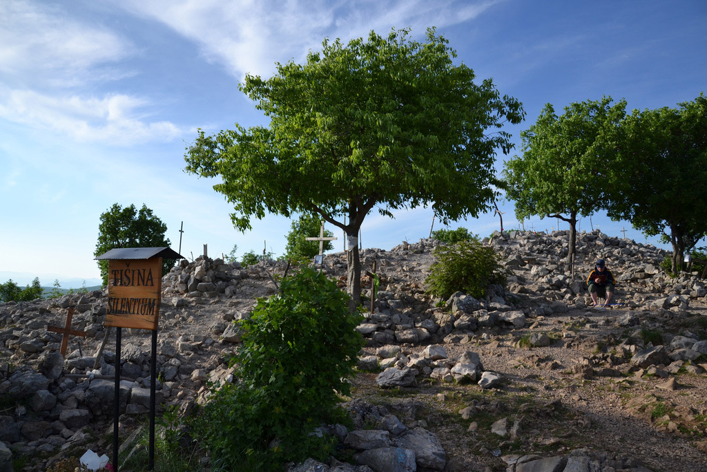 Con una luce meno dura lo scatto avrebbe guadagnato in misticità...(visto anche il luogo)...mentre una ripresa per avvicinare di più i piani degli elementi in gioco avrebbe collegato più direttamente scritta e persona...