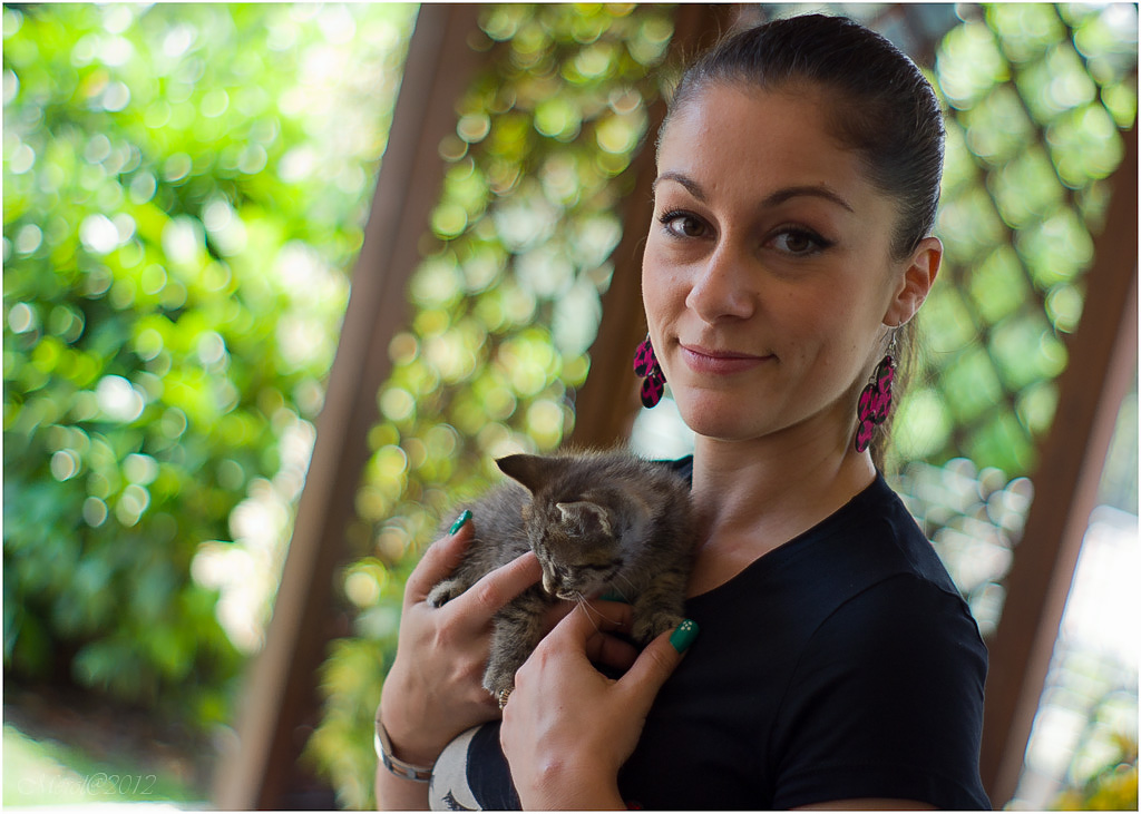 Peccato non avere lo sguardo in camera anche di quel piccolo batuffolino di pelo, in questo piacevolissimo ritratto doppio dal baluginante gioco di luci dello sfondo sfuocato.