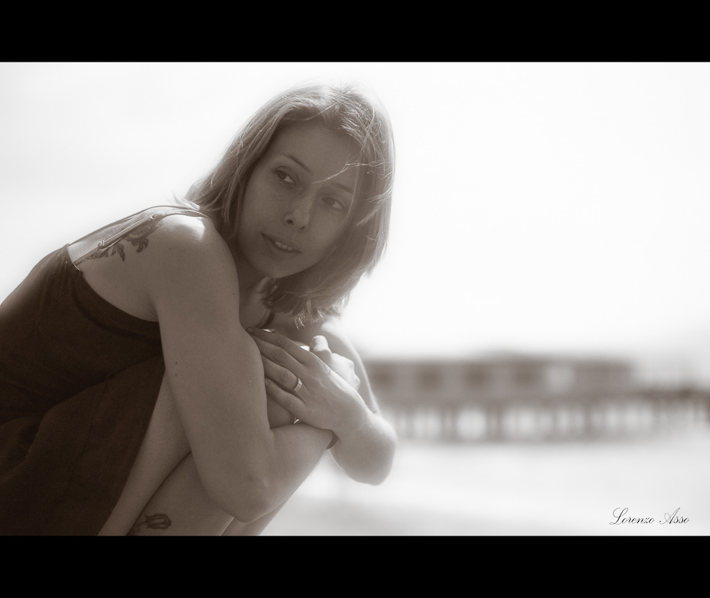 un ritratto immerso in un bagno di luce. mi piace molto la composizione, con lei parecchio decentrata ed il suo sguardo che fugge lontano.