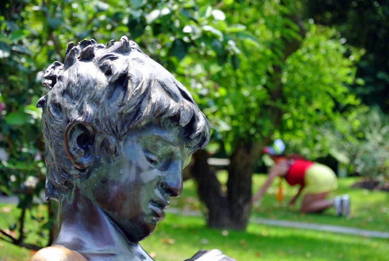l'interazione fra la statua e il resto, sopratutto cercando di collegarla a quella figura in ginocchio la trovo difficile, principalmente per lo sfocato che isola in modo molto deciso il soggetto in primo piano e poi perché non trovo, ma questo sarà un mio limite, una lettura convincente fra loro. |