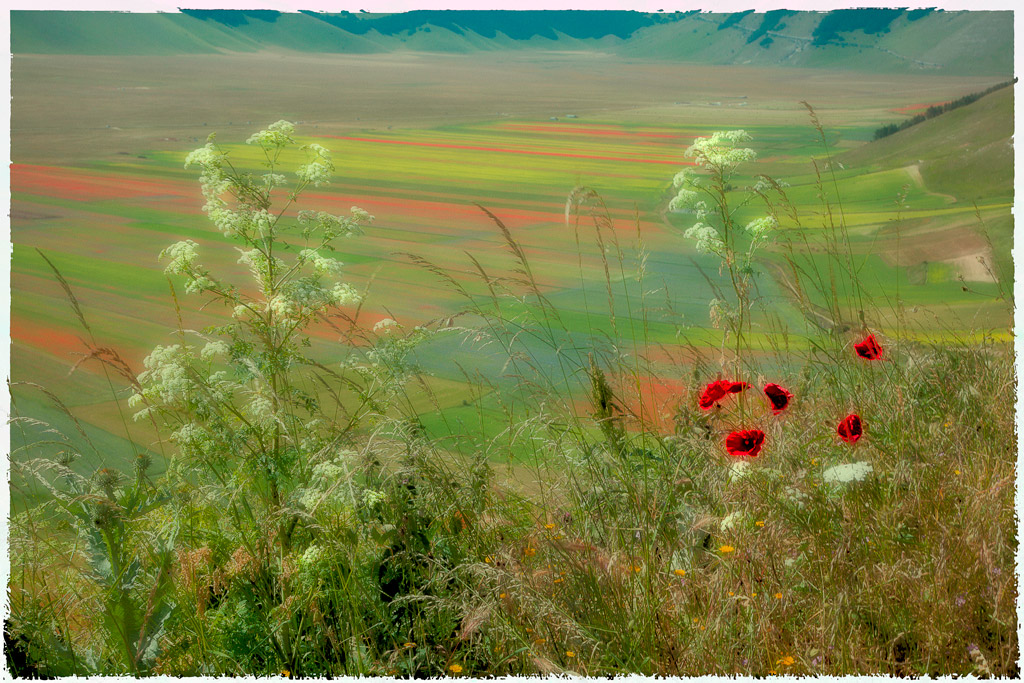 Bellissimi i campi sullo sfondo… mi convince meno la gestione del primo piano, forse con eccessiva pp, che rende i papaveri troppo innaturali.