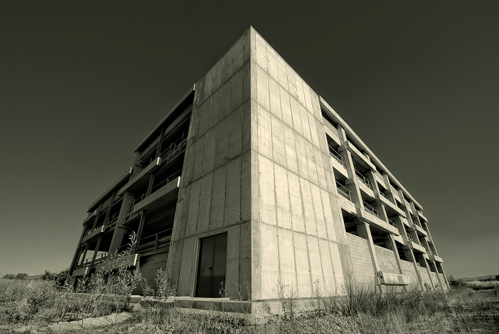 Solo un tetro mostro edilizio, un denso cielo e qualche filo d'erba... nulla più... sembra poco ma c'è tutto quello che ci deve essere, messaggio compreso.