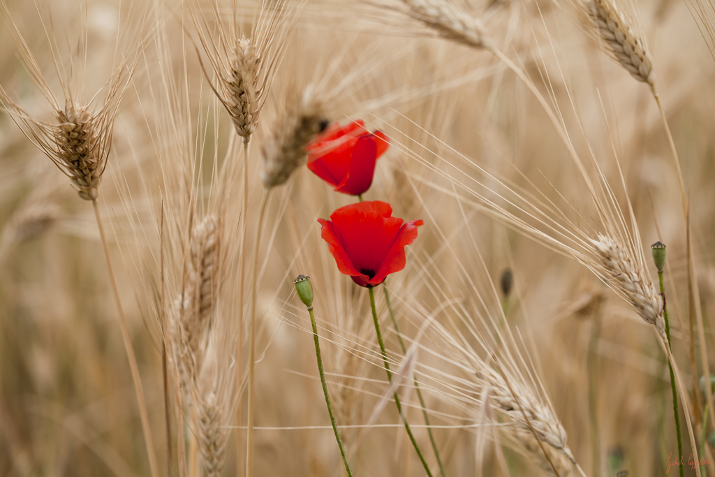 Personalmente avrei composto o con un taglio verticale o tenendo i papaveri più di lato (meno centrali). Ed eliminato il papavero sfiorito .