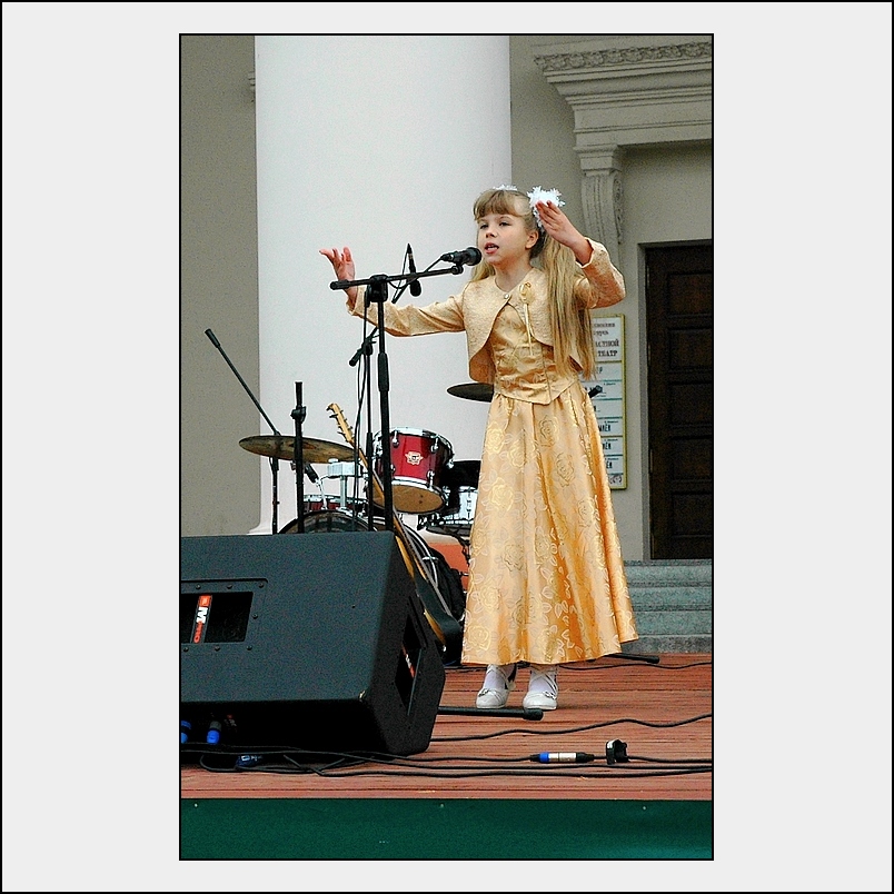 Poichè non sono riuscito a trovare un programma dettagliato della manifestazione mi sono trovato sempre nel posto sbagliato al momento sbagliato (i vari eventi più o meno ufficiali si tengono in più piazze della città), però sul palco davanti al teatro prima dell'inizio della parata (più fotografica che militare ... fra i giovani in divisa schierati lungo il percorso c'era chi parlava al telefonino e chi si faceva fotografare abbracciato alle - quasi - soldatesse) c'è stato un gran trafficare per preparare gli strumenti con contorno di fanciulle in fiore su trampoli da 20 cm.