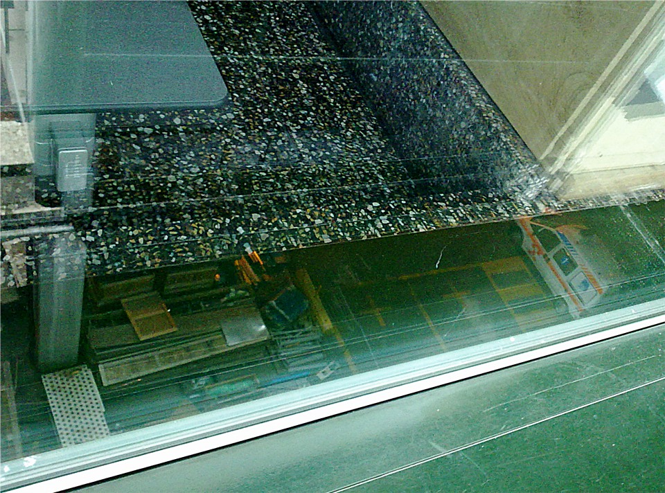 Personalmente non mi gusta molto la poca nitidezza, principalmente dovuta ai riflessi e alla sporcizia sui vetri. Questo aspetto lo trovo stridente (insieme alla presenza del'ambulanza e agli altri elementi che si intravedono nel quadrante in basso a sx) rispetto al tentativo di "astrazione" compositiva che mi sembra fosse nelle intenzioni dell'autore.