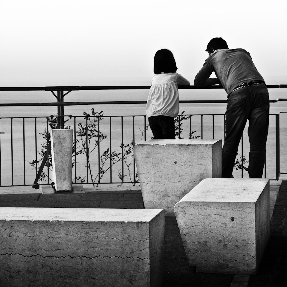 Amp indecisa tra un taglio "life" (che però si perde sulle schiene) e una possibile valorizzazione di quelle strutture in pietra a confronto con la geometria della ringhiera e la vitalità degli arbusti.