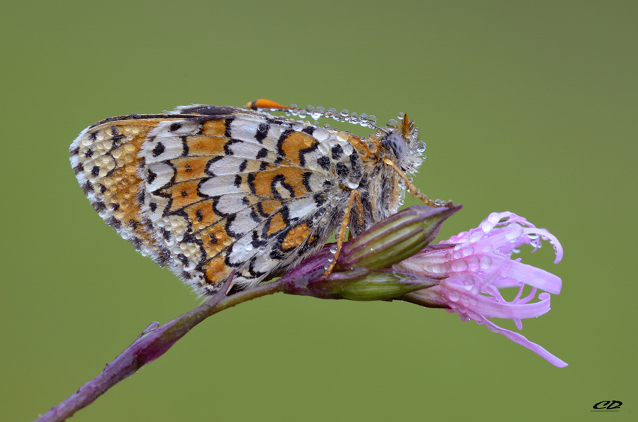 Molto elegante la ripresa di questa Melitea...Ben composta e nitida con il posatoio dalle tonalita' delicate.Bello lo sfondo cosi' carico...