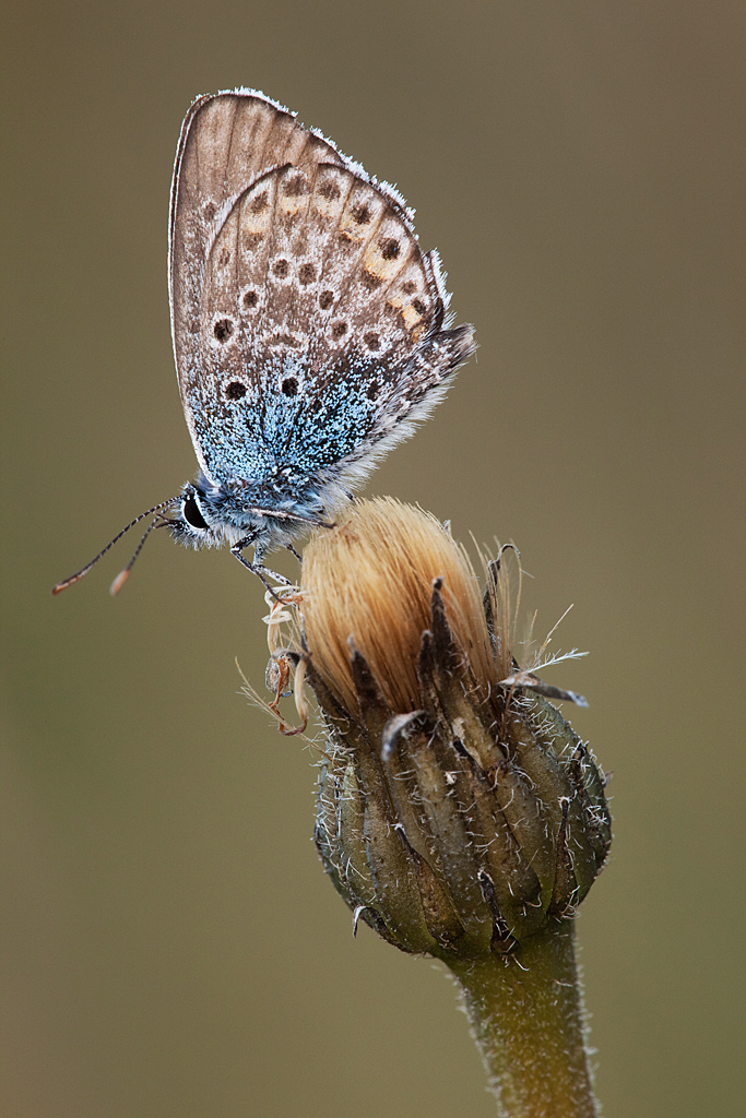 Altro licenide ... credo un Polyommatus icarus come il precedente ma ha una livrea decisamente diversa, più scura e con meno scaglie e anche sul margine esterno ha meno peluria, è perchè le ha perse con il tempo? è un'esemplare "vecchio"?