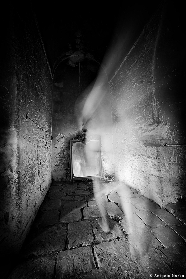 la gestione dei tempi lunghi, porta ad una dimensione surreale, dove qualcosa di magico sta per accadere. La vera foto é nello specchio, quando diventa la chiave per cercare di capire quello che sta per accadere. Ma non c'é nulla da fare si può solo immaginare: ed é questo secondo me la forza dello scatto.