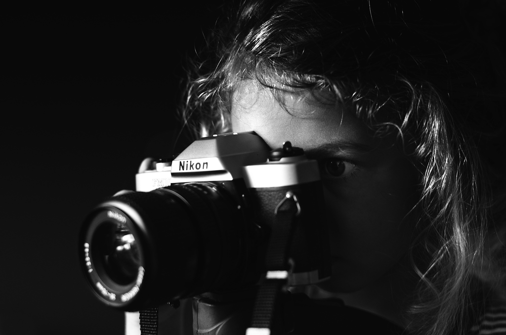 Bene ....ma allora è proprio questo "fare" che avrebbe dovuto emergere con forza. Pensa se il viso fosse stato più illuminato, ...l'occhio almeno, ...invertendo la direzione della luce;...pensa se questo "fare" ...l'attenzione della tua piccola cioè che scruta attraverso il mirino fosse stata sottolineata anche dalla gestualità della mano che sorregge il corpo macchina; ...pensa ad una inquadratura anche leggermente più ampia nel tentativo di cogliere una qualche gestualità del corpo.