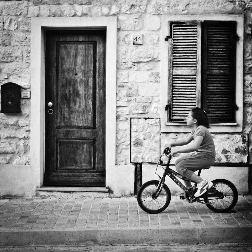 Buono (piacevole) il soggetto, corretta l'inquadratura, buono il BN (contrastato come piace a me, anche se con qualche nero un po'troppo chiuso, vedi per, es,cassetta posta e qualche bianco bruciato), assai meno la nitidezza, forse a causa anche di una maf non ottimale. Hai usato un tempo veloce? La bici sembra ferma, guardando i raggi delle ruote.Ciao _________________ Ilio |