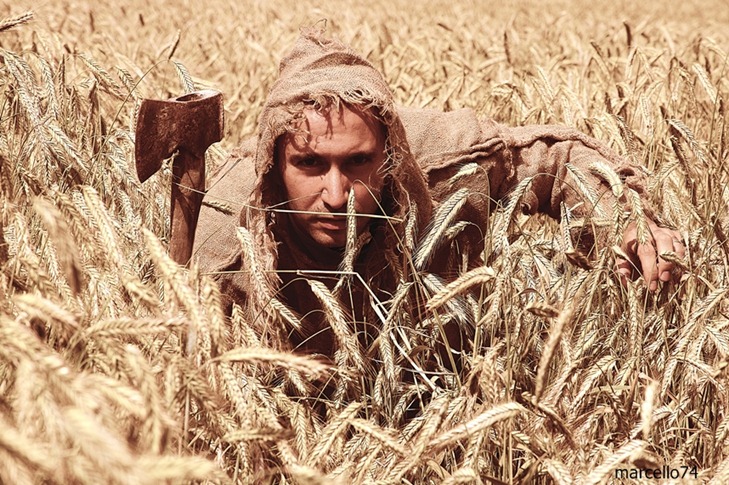 Può essere infatti un cacciatore di uomini, perché è verso di essi che l'ascia è efficace; ma l'ascia è moderna, e chiaramente questa rappresentata non è un attrezo da guerra.
