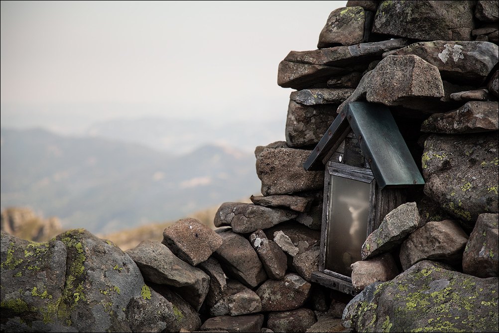 Di questa foto, dai colori cupi ed aspri delle rocce, mi ha colpito sopratutto il rimando fra lo sfocato dello sfondo e lo 'sfocato' , per l'umidità suppongo, del vetro del tabernacolo, con tutti i significati 'oltre' che ciascuno può vederci a proprio piacimento...ciao Smile