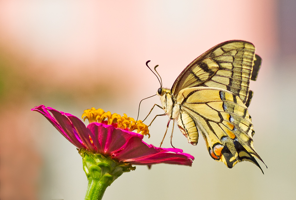 Imponente la scena rappresentata, peccato per quel pizzico d'ala mancante di nitidezza. Credo tu abbia affrontato la farfalla con delle impostazioni non propio corrette. La sua imponenza a mio avviso avrebbe richiesto un diaframma più chiuso. Il tempo con cui hai scattato poteva essere notevolmente ridotto visto l'ottica con cui lavoravi a beneficio di un diaframma più chiuso guadagnando in pdc.