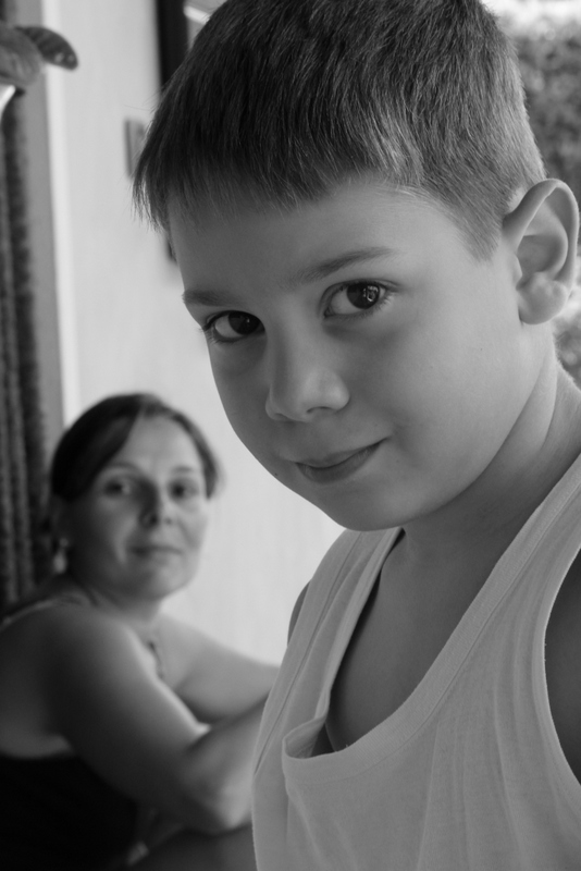 un bel doppio ritratto, dove anche la signora fuori fuoco presente nello sfondo ha un significato di co-protagonista. mi piace l'uso della focale scelta in relazione alla poca distanza tra te ed il bambino ritratto. il bn è molto piatto in quanto rappresentato solo nella gamma dei grigi medi e fa perdere parecchio impatto al risultato finale Smile
