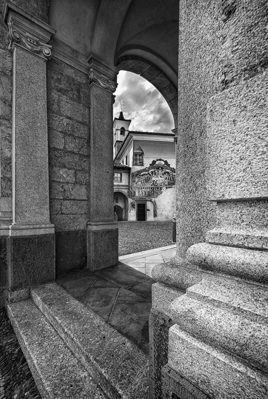 la foto mi piace, con quella fuga verso l'esterno e l'arco che fa da quinta, ed il b.nero è ben fatto.-