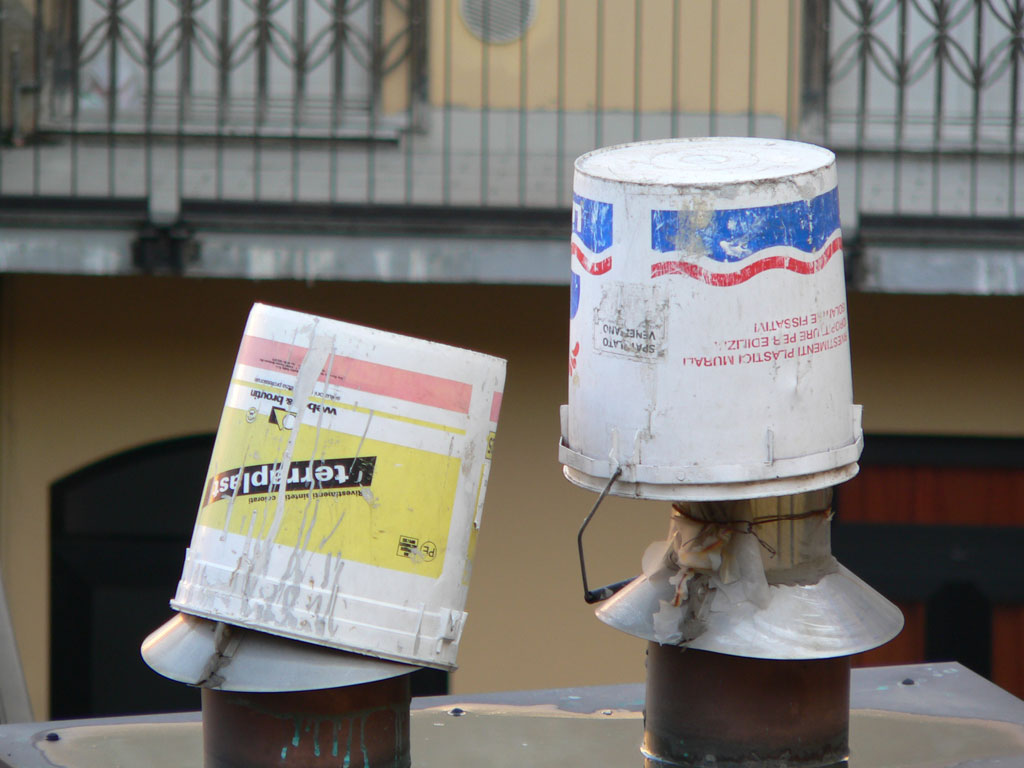 Diciamo la verità: il soggetto non è certo dei più interessanti; comunque se proprio si deve fotografarlo, tenterei almeno con una inquadratura verticale, per dare più slancio ai comignoli (che nella tua foto sono addirittura tagliati) ed eliminare un po' dell'inutile balcone sullo sfondo.
