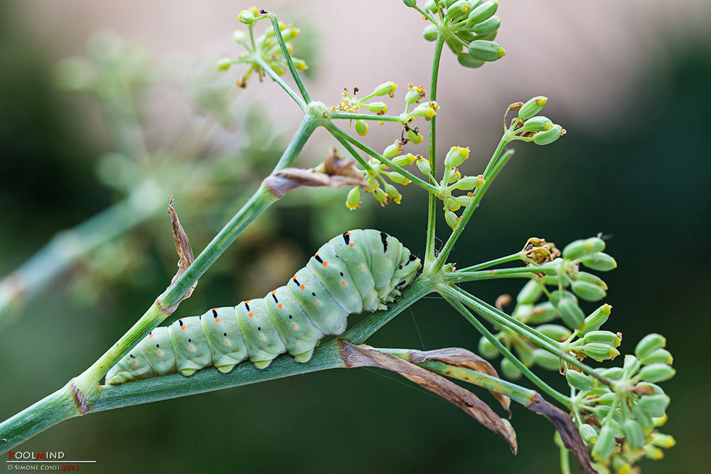 Non potendo spostare il bruco e non potendo sfoltire il finocchio (è il suo pranzo, poraccio!) lo sfondo è venuto un po' affollato.
