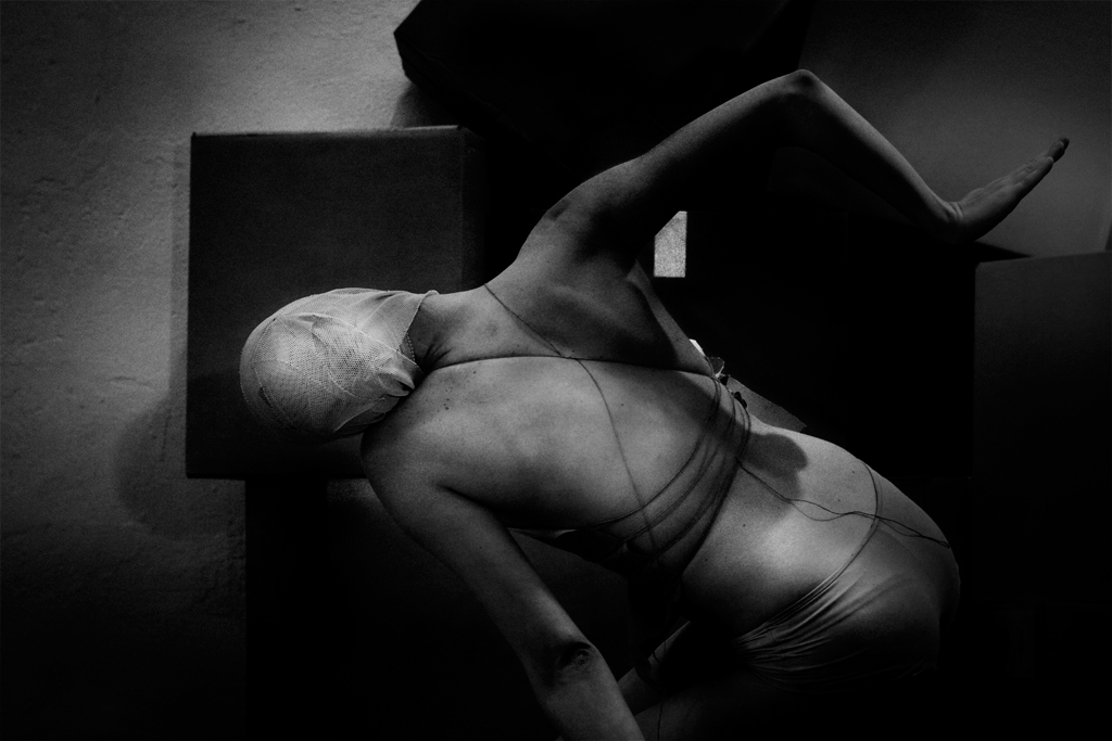 | Una foto concettuale interessante, con un bel dinamismo di linee, che forse si interrompe con il braccio sx tagliato, bel trattamento in BN. Per curiosità mi piacerebbe capire cosa indossa la modella, ciao grazie. |