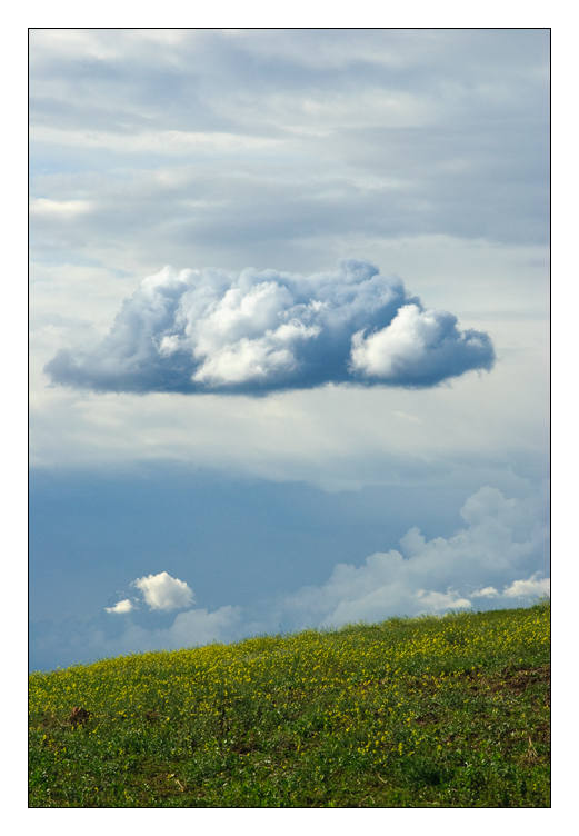 Una delle poche fotografie in cui il cielo regge da solo l'intera immagine. Quella nuvola sospesa è una chicca. La porzione di prato risulta solo un pretesto per introdurre all'osservazione del cielo.