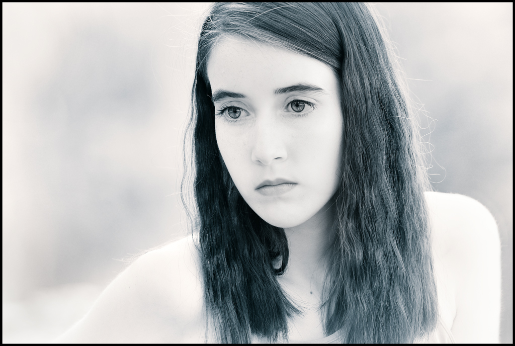 Ci racconta ...di pensieri come filigrane preziose, questo ritratto dal chiaroscuro in chiave alta che il viraggio allenta nelle dolcezze di sfumature lievi ed impalpabili.