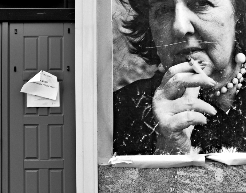 Ho estratto la camera e ho scattato, non tanto per il foglio, ma per lo sguardo magnetico che usciva dal manifesto.