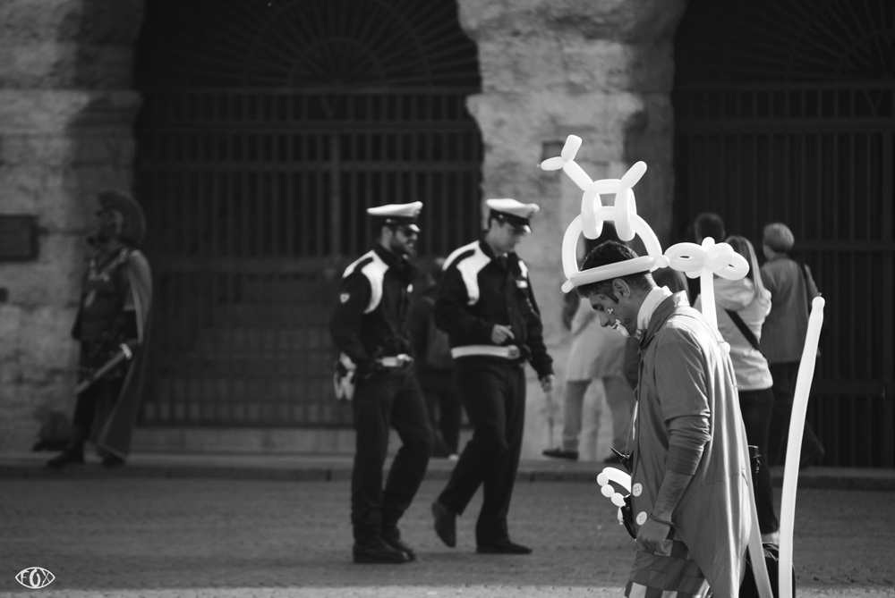 Secondo me il difetto più grande di questa foto è la sovrapposizione del soggetto principale con le figure sullo sfondo, tutto quel grigio confonde un pò (sopratutto sul volto). Chissà, magari a colori il soggetto si stacca di più? Smile