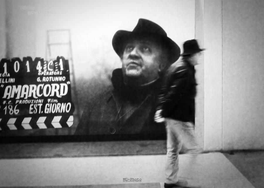 il raccordo cappello-cappello ci sta, ma la forza evocativa, "amarcord", sta tutta nel manifesto e nella gestione del mosso-sfocato, che riprende il processo della memoria e dei ricordi quando si perdono nel tempo.